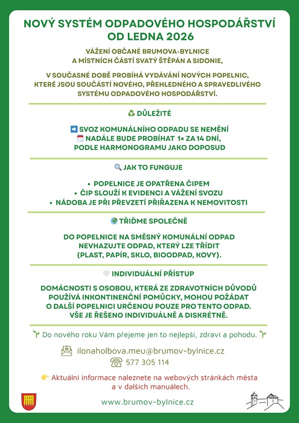 Jaká bude výše poplatku za r. 2026, harmonogram svozů a další důležité informace najdete na webových stránkách města v sekci ODPADOVÉ HOSPODÁŘSTVÍ